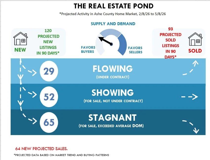 The Pond graph looks back at the rate properties sold a year ago and uses those buying patterns to project what may happen in the next 90 days of 2026.