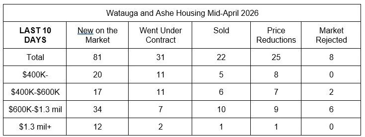 How are properties flowing currently? Look at what’s been happening in the Watauga and Ashe Home Markets and the High Country Land market during the past 10 days.