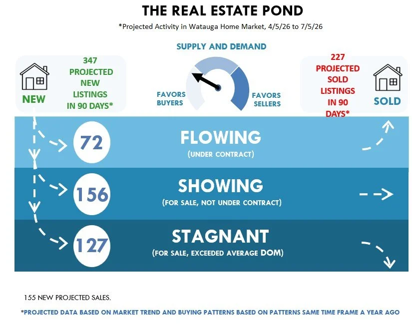The Pond graph looks back at the rate properties sold a year ago and uses those buying patterns to project what may happen in the next 90 days of 2026.