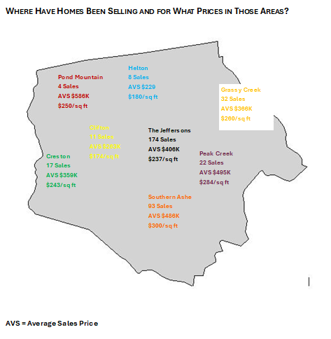 WHERE HAVE HOMES BEEN SELLING AND FOR WHAT PRICES IN THOSE AREAS?